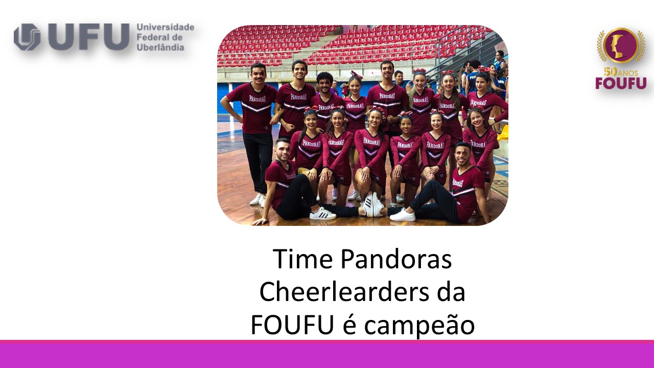 No dia 13/07/2019 ocorreu o III Torneio de Cheerleading da UFU na Arena Sabiazinho, o evento foi uma parceria da PROAE e DIESU. O time Pandoras Cheerleaders que representa o curso de odontologia garantiu o pódio sendo campeão da categoria universitária team cheer co-ed nível 1, competindo com o time Blue Beast representante da atlética Agrárias. Com a posição de primeiro lugar na competição, o Pandoras será responsável por uma apresentação na abertura das olimpíadas da UFU. A equipe responsável pela vitória foi composta por: