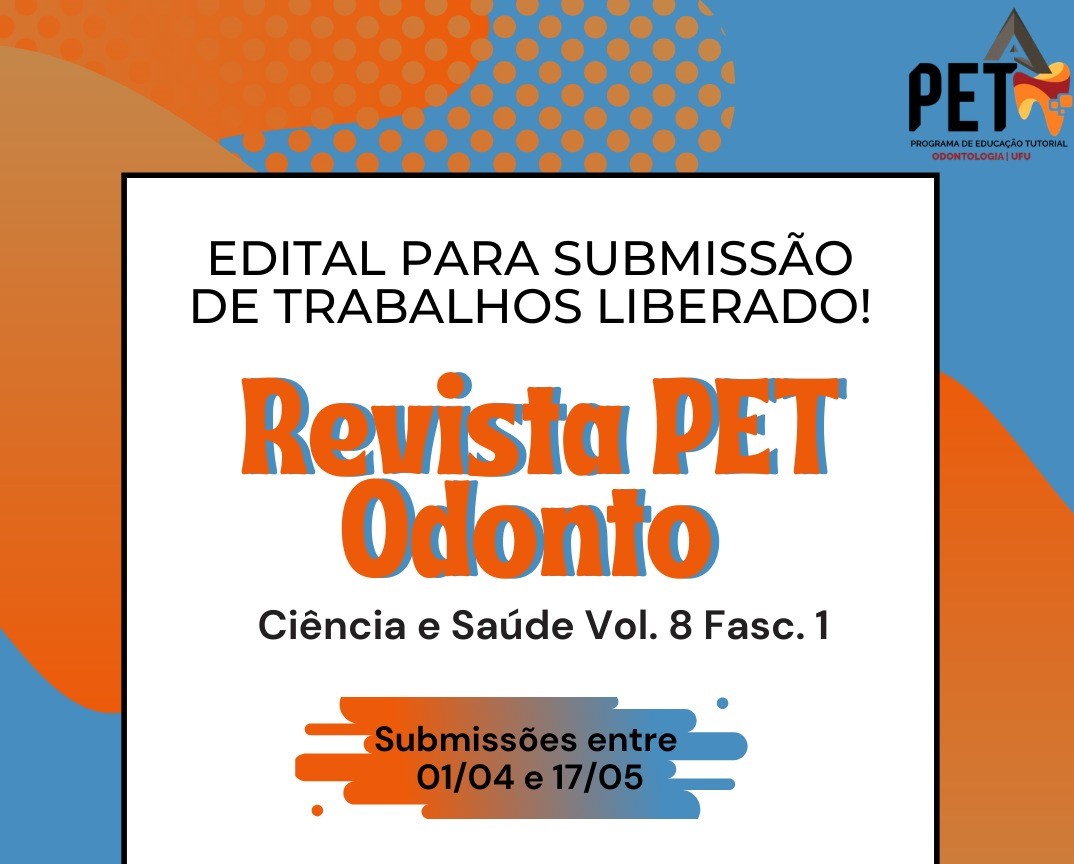 (ENCERRADO) Edital Revista PET Odonto Ciência e Saúde Volume 8, Fasc. 1 - Normas para submissão de trabalhos.